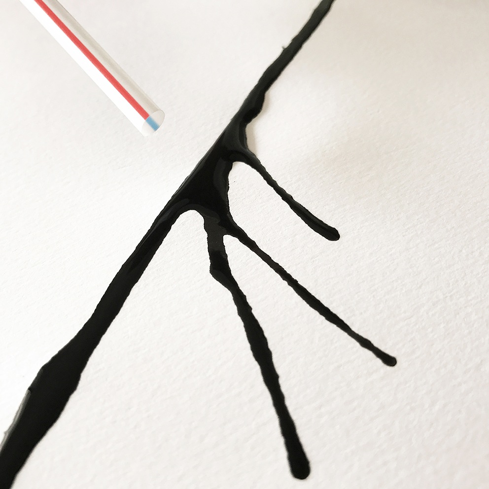 Inspired by the Chinese blow painting technique, the artist breathes life into a river of ink by guiding the flow of its tributaries into the silhouette of a majestic pine tree. Created just in time for Christmas.