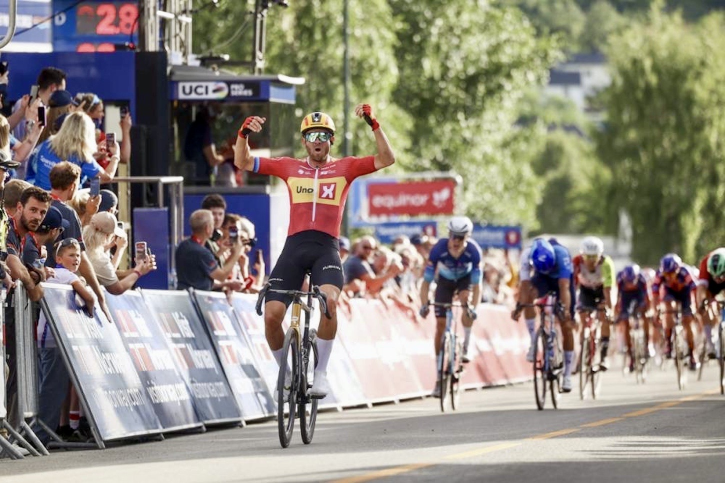 Three laps to a 13.7-kilometer circuit that included a gravel sector awaited the riders at Sorreisø. At its entrance (km 125,6), the five-man unit at the front of the race held a 1’15” gap over the bunch. Baksaas took maximum bonus seconds at the first passage through the intermediate sprint in Sorreisø (IS, km 136,5), and got distanced from the break shortly after. The remaining four escapees kept 30” on the peloton 22 kilometers from home, yet were caught after riding again through Sorreisø (IS, km 150,2), this time led by Vang Aas. Abram Stockman (Unibet Tietema Rockets) then tried to break away on his own, yet he was quickly overtaken by Kevin Vermaerke (Picnic-PostNL), who was alone in the lead at the exit of the last passage through the gravel sector. The American rider held a 10” gap with 5 to go, yet was brought back by an excited peloton. With the finish line in sight, a crash affecting Equipo Kern Pharma’s Pau Miquel derailed the efforts of the best part of the bunch. Uno-X, though, was already hitting the afterburners and had no issue delivering Alexander Kristoff in the best possible position to the home straight for him to net the victory.