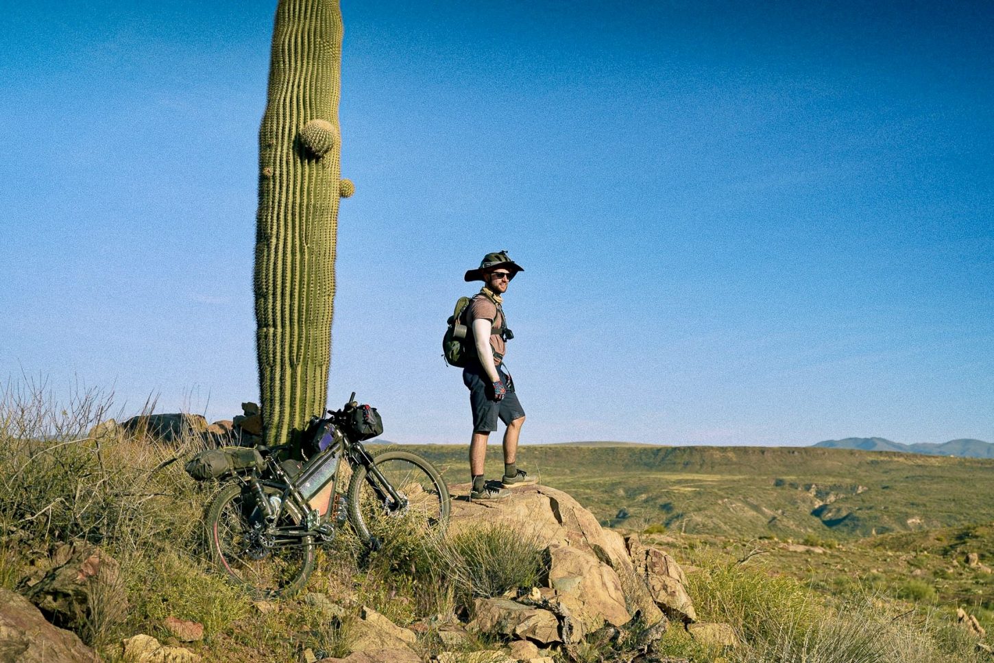 Created by Miles Arbour, the Fool’s Loop is a 270-mile bikepacking route that starts in Phoenix, Arizona, heads north to Cordes Lakes, and returns via the Black Canyon Trail (BCT). The highlight of this route is the variation in terrain. There’s something for everyone. The first 120 miles are mostly gravel roads before you hop onto the BCT for a long stretch of singletrack back to Phoenix. The BCT ranges from smooth and flowy to steep, rugged, and rocky. Temps ranged from 92 to 101°F, and we carried up to seven liters of water.
