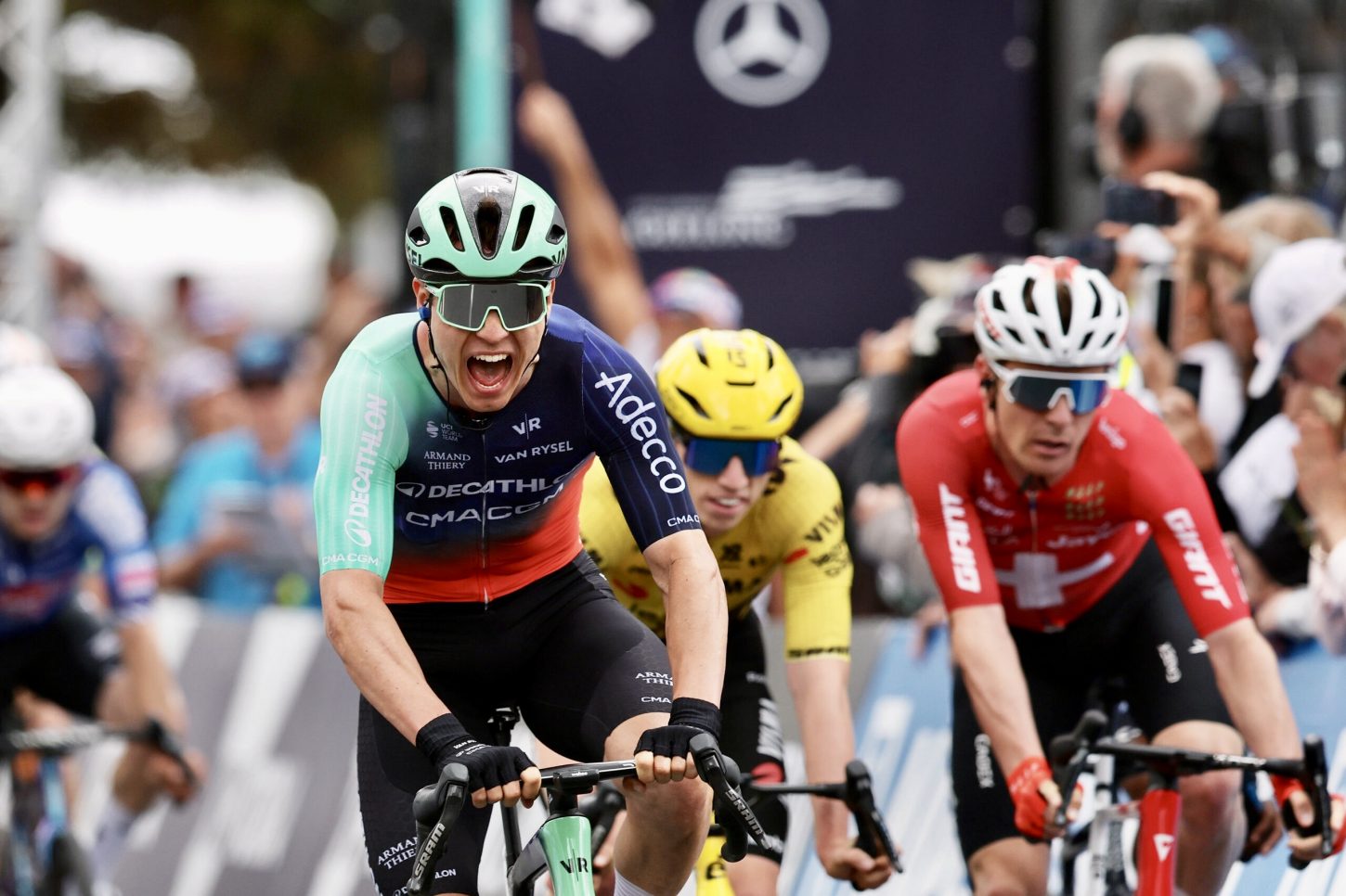 Tobias Andresen won the 2026 Mapei Cadel Evans Great Ocean Road Race today in a brilliant bunch sprint on a crowd-lined Geelong waterfront.