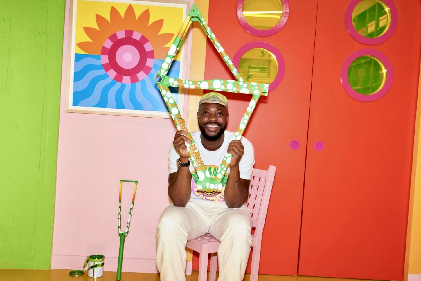 Cinelli has partnered with Artist Yinka Ilori for a limited edition “Dream Together, You Can Still Win” capsule collection that spans a dazzling cycling jersey and cap, along with an equally striking casual T-shirt and the Italian brand’s Vigorelli frameset that’s bedecked in all-manner of organic green and orange graphics.
