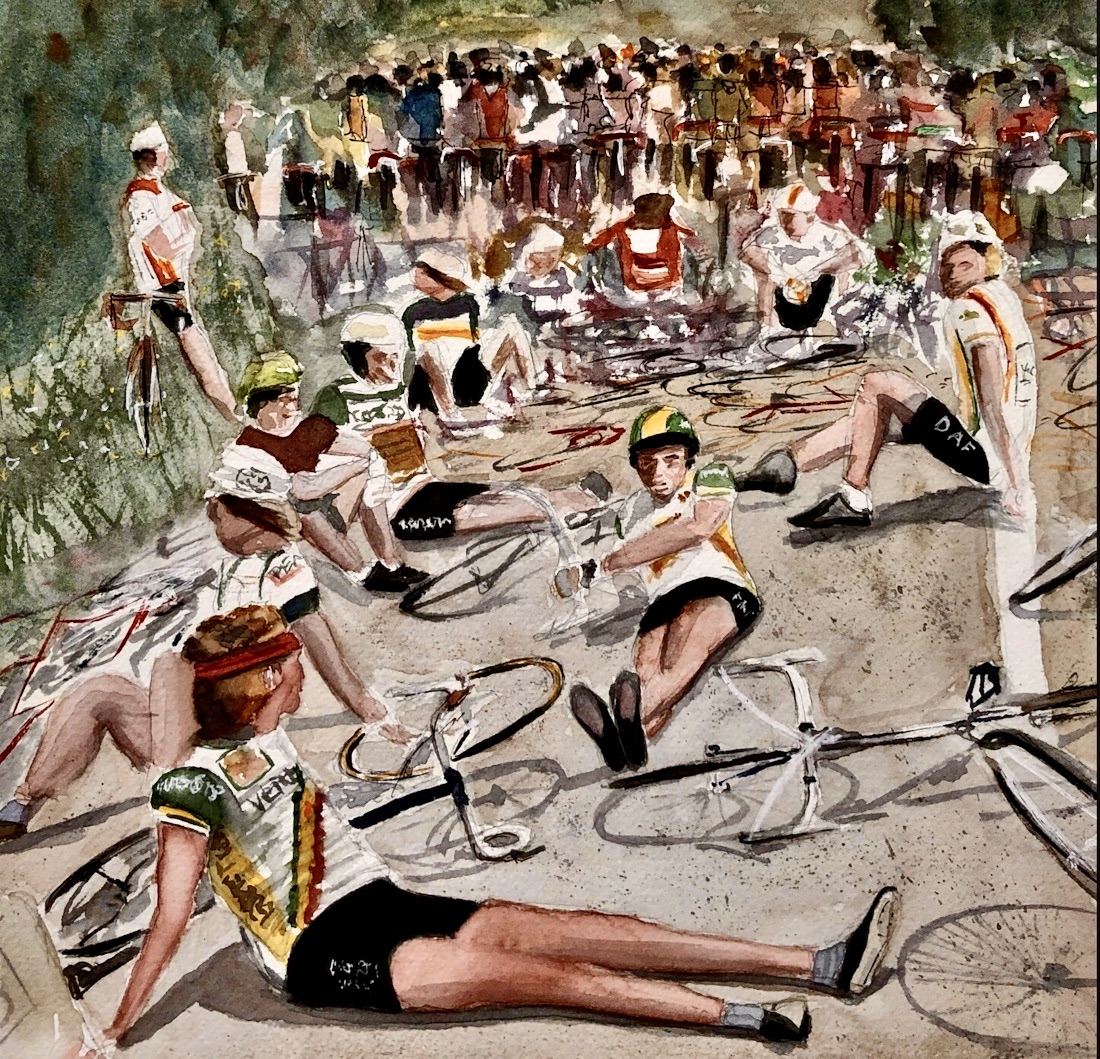 Cycling Image of the Day #RetroPeloton #bicycle #BikePainting #bikerace #bicyclerace #VeloArt #BicyclePainting #BikeArt #CyclingPainting #InThePeloton #Peloton #CyclingArt