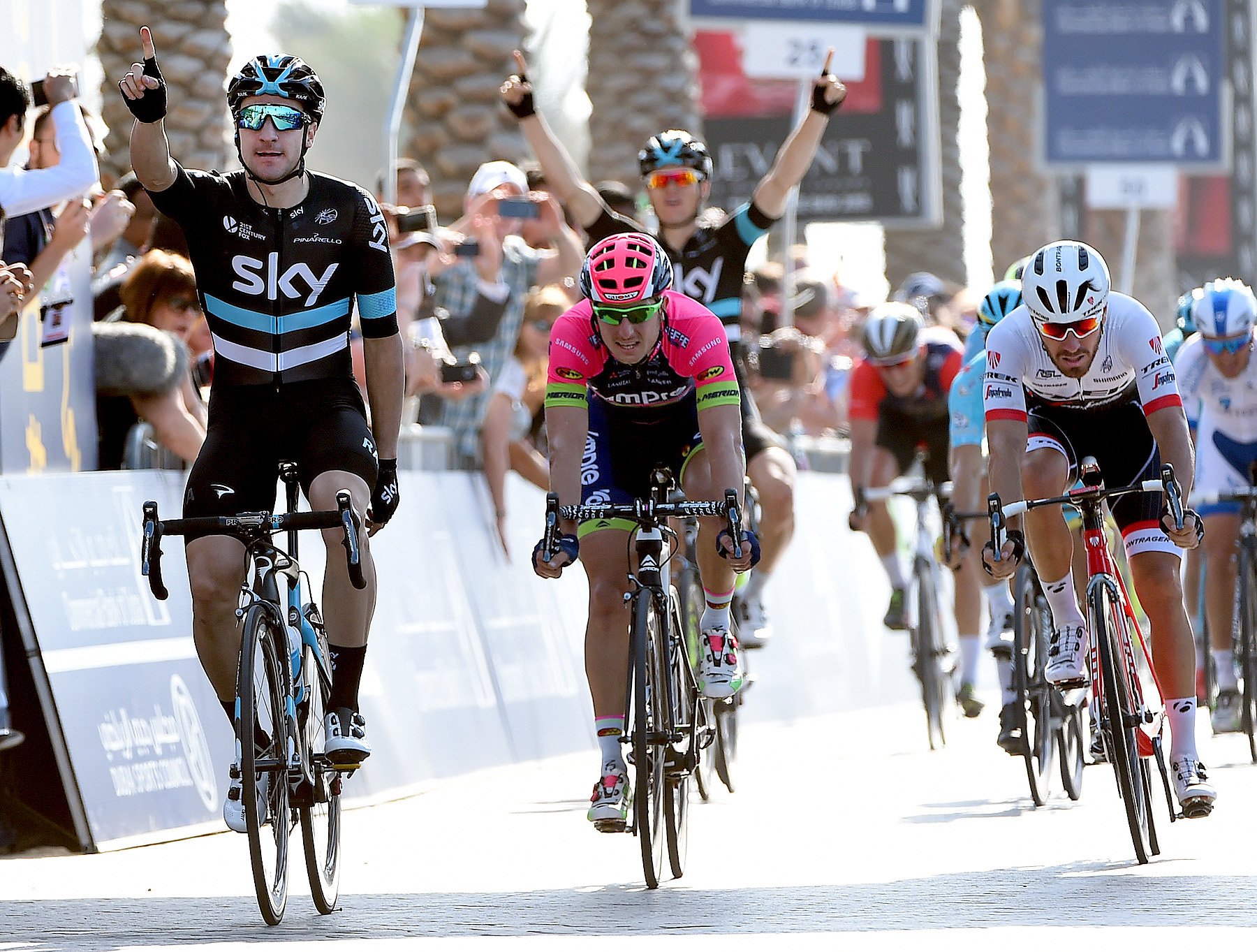 1 Elia Viviani (Ita) Team Sky 7:42:50 2 Marcel Kittel (Ger) Etixx – Quick-Step 3 Giacomo Nizzolo (Ita) Trek-Segafredo 0:00:02 4 Sacha Modolo (Ita) Lampre – Merida 0:00:04 5 Mark Cavendish (GBr) Dimension Data 6 Soufiane Haddi (Mar) Skydive Dubai Pro Cycling Team – Al Ahli Club 0:00:09 7 Andrea Guardini (Ita) Astana Pro Team 0:00:10 8 Tomas Vaitkus (Ltu) Al Nasr Pro Cycling Team-Dubai 9 Michal Kolar (Svk) Tinkoff Team 10 Chris Opie (GBr) ONE Pro Cycling