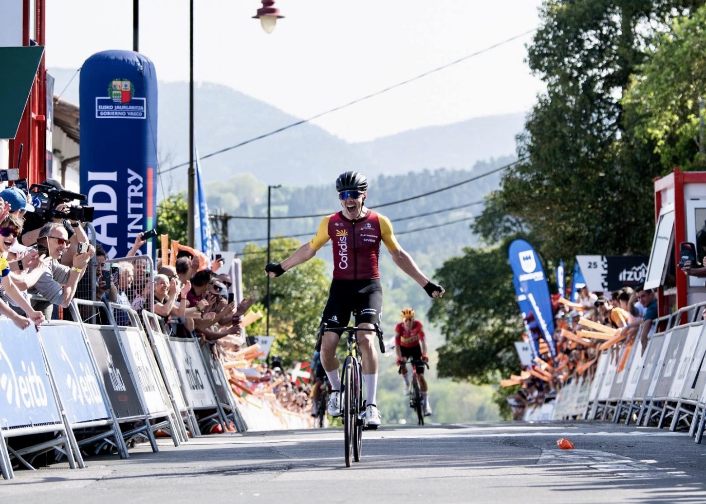 Alex Aranburu (Cofidis) emerged victorious at the end of stage 4 in Itzulia Basque Country today, finishing ahead of Tobias Halland Johannessen (Uno-X Mobility) atop the final climb of the day.