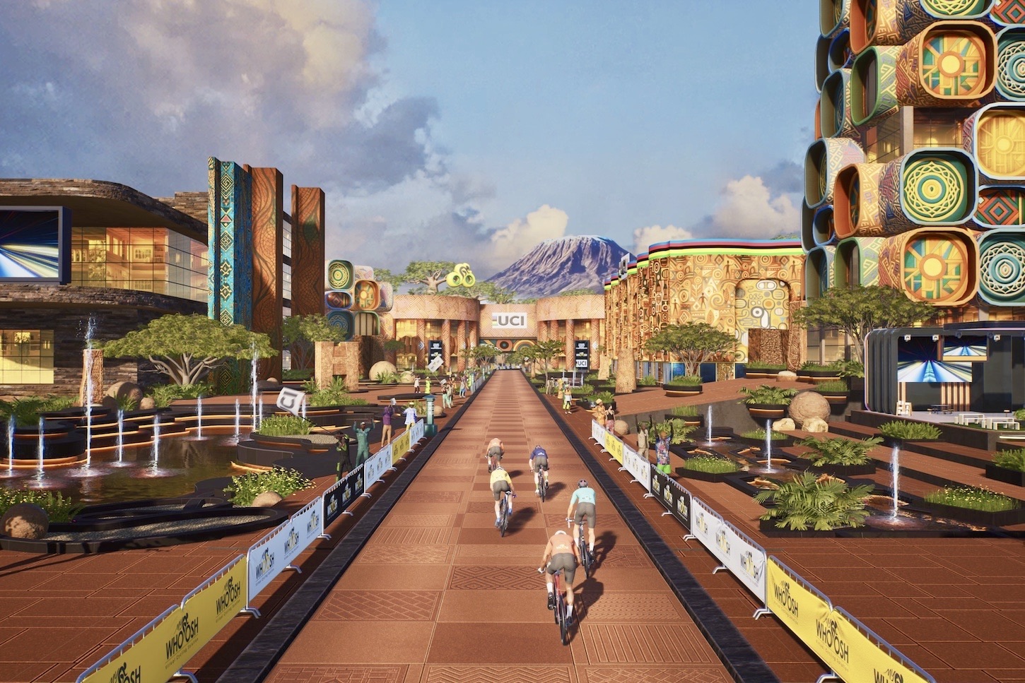 The update also introduces the stunning new UCI world inspired by African landscapes, featuring fictional routes. This new world will be available in specific events and will serve as the official route for the 2025 UCI Cycling Esports World Championships.