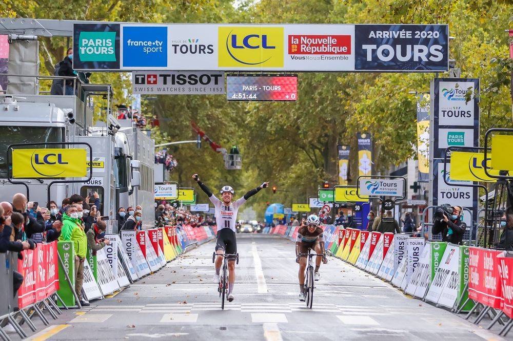Arnaud Démare (Groupama-FDJ) won a thrilling 115th edition of Paris-Tours on Sunday ahead of Franck Bonnamour (B&B Hotels p/b KTM) and Jasper Stuyven (Trek-Segafredo). The pace was relentless from the start, with a hard battle through the wind, and the attackers lit fireworks on the vineyard trails leading to Tours. Among them, Bonnamour was still alone in the front with San Dewulf as they entered the last kilometre… But Démare, after a strong attack on the final climb of the day, produced a massive effort to bridge the gap and dominate the four-man sprint. He is the first French winner of Paris-Tours since 2006, when Frédéric Guesdon claimed victory. Today, Guesdon was in perfect position to enjoy Démare’s win, as a sports director for Groupama-FDJ.