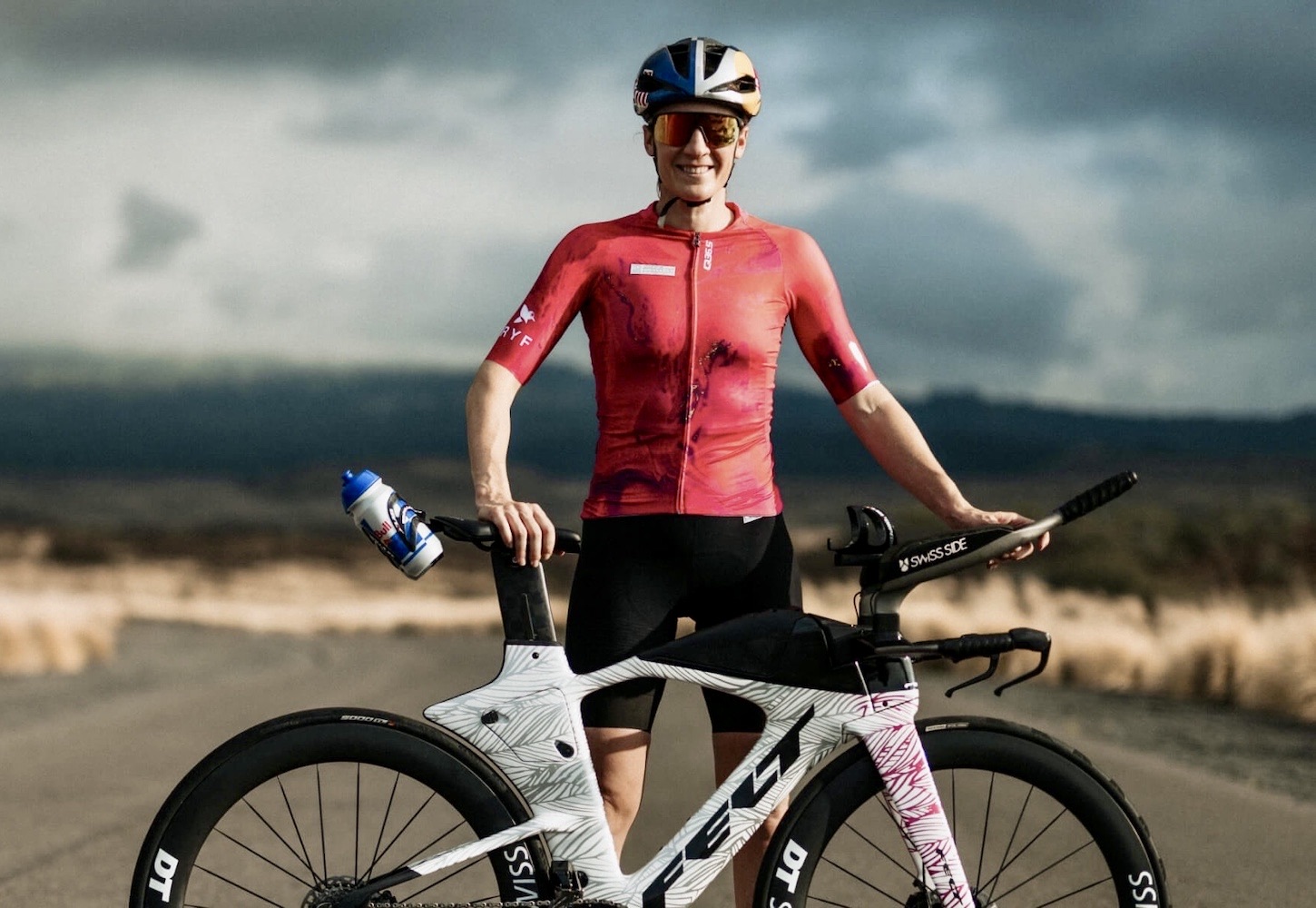 Inspired by the volcanic landscapes of Kona that held host to her historic four consecutive Ironman World Championship victories, this striking new collection features two jerseys and two skinsuits in a Lava Red “Fly With Passion” colourway and a Volcanic Black “Angry Bird” colorway.