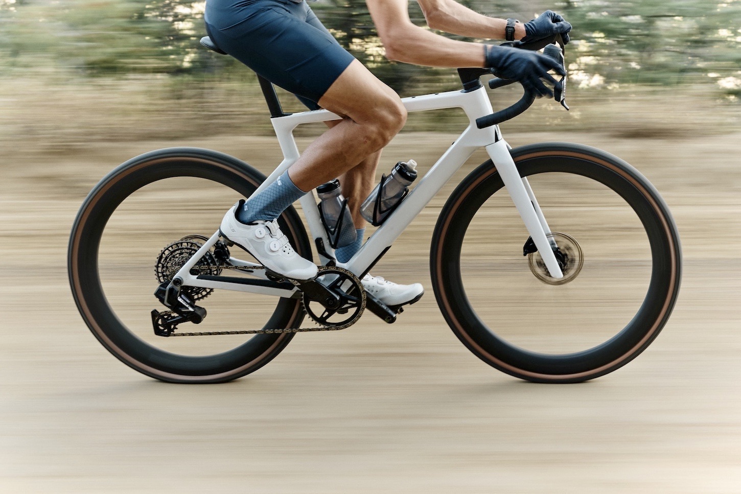 In the case of the gravel variant, the shoe features an enhanced tread to allow for improved off-bike traction.