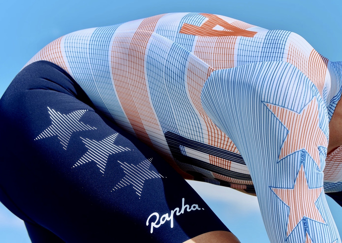 “A futuristic exploration of the nation’s storied sporting history, the design evokes the lightness and grace of a rider in full flight. Blending instantly recognisable elements of the Stars and Stripes with a sense of movement creates a new look for USA Cycling. It is a kit that feels fast even when standing still, meant to mirror the explosive energy of a new generation of American talent,” says Rapha.