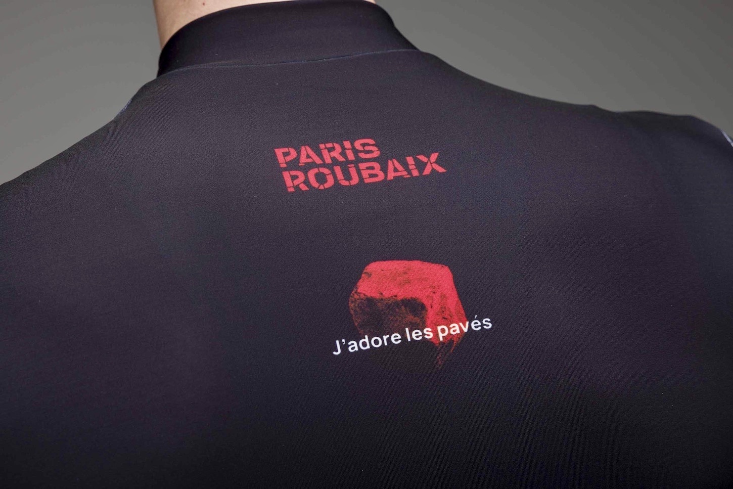 Completing the concept is the phrase “J’adore les pavés”, a proud declaration of love for a race as brutal as it is fascinating, paired with a black and red color palette that evokes the very essence of the cobbled classic.