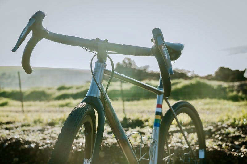 The bike features South Industries’ GX rims that are laced with Industry Nine Torch hubs and Sapim CX Ray spokes, along with a Shimano GRX/XT Di2 groupset, an Easton EA90 crankset, a Thomson finishing kit and a Brooks C17 saddle.