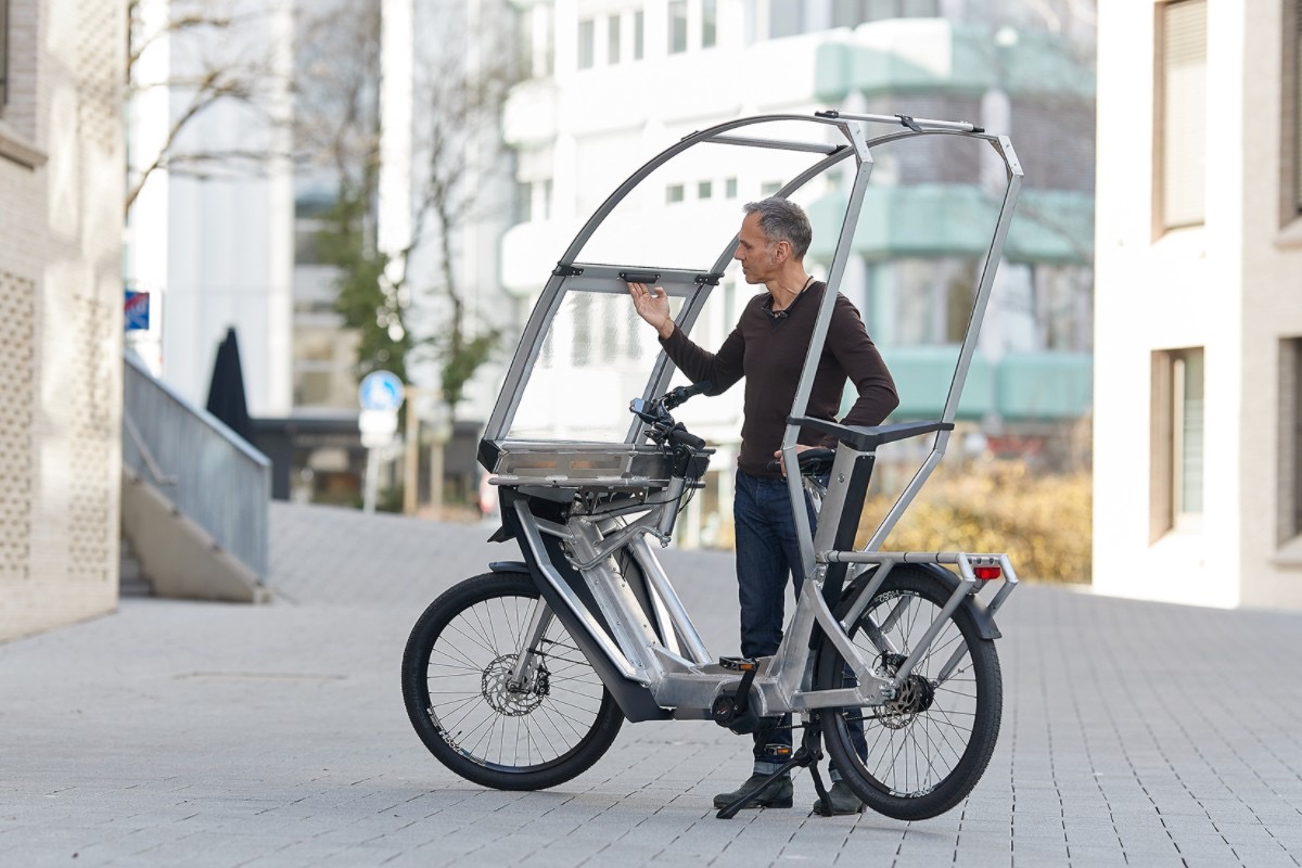 According to Eisner, the plastic is quite tough, and stands up well to strong winds. Moreover, the cyclist’s legs are protected by a solid shield that’s attached to the bike’s downtube.