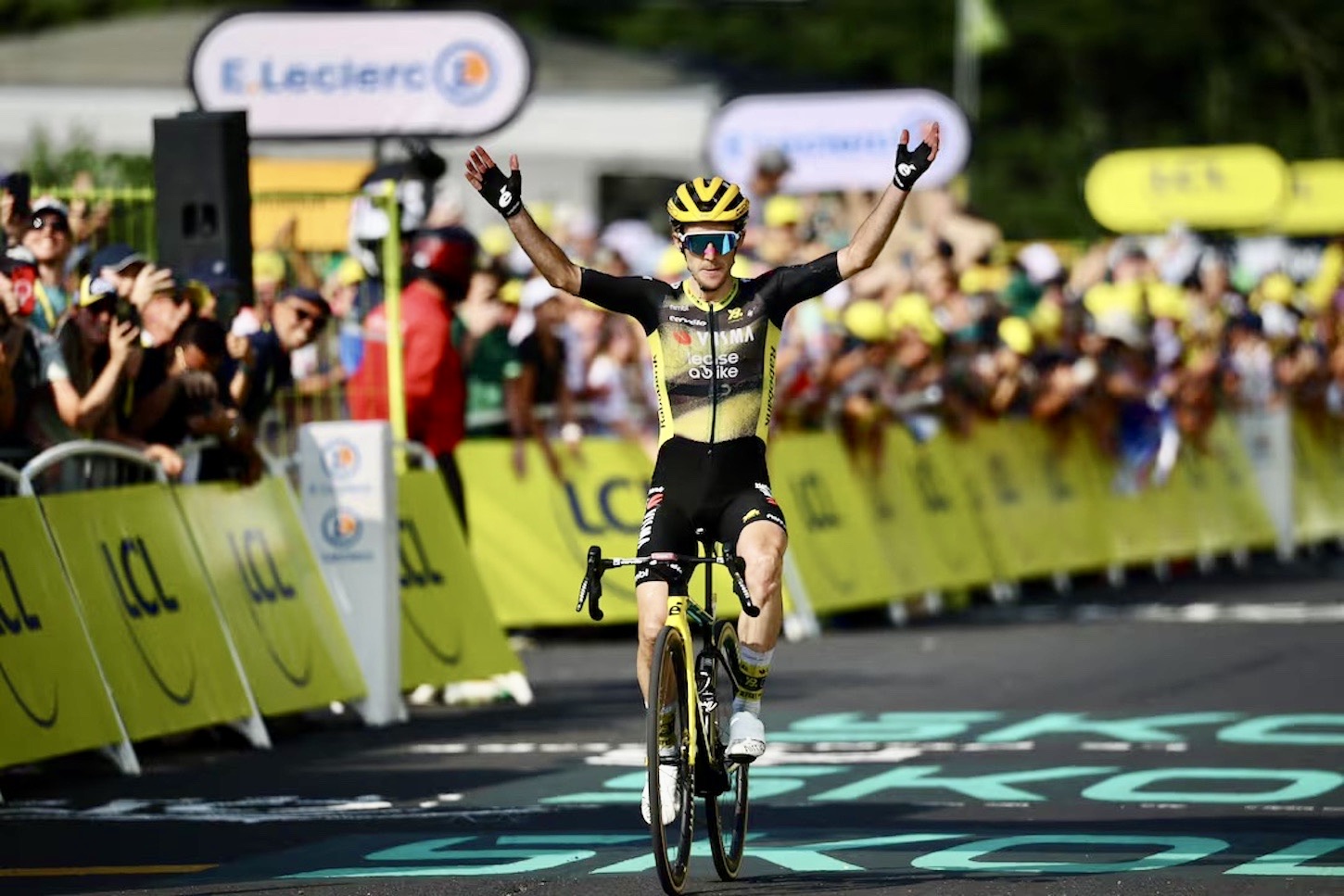 Stage 10 of the Tour de France delivered the fireworks everyone was waiting for on July 14. The roads of Massif Central witnessed a flurry of attacks all day long, until Simon Yates (Visma-Lease a Bike) dropped his breakaway companions on the final climb to in Le Mont-Dore, claiming his third Tour stage win, six years after the previous two. Also part of the breakaway, Ben Healy (EF Education-EasyPost) gave it his all to chase the Maillot Jaune. Third on the day (+31’’), he becomes the fourth Irish overall leader of the race, the first since Stephen Roche’s mythical year 1987! After Visma-Lease a Bike tried to put him under pressure, Tadej Pogacar (UAE Team Emirates-XRG) attacked on the final climb, but Jonas Vingegaard matched his pace. The Slovenian is now 29’’ behind Healy on GC.