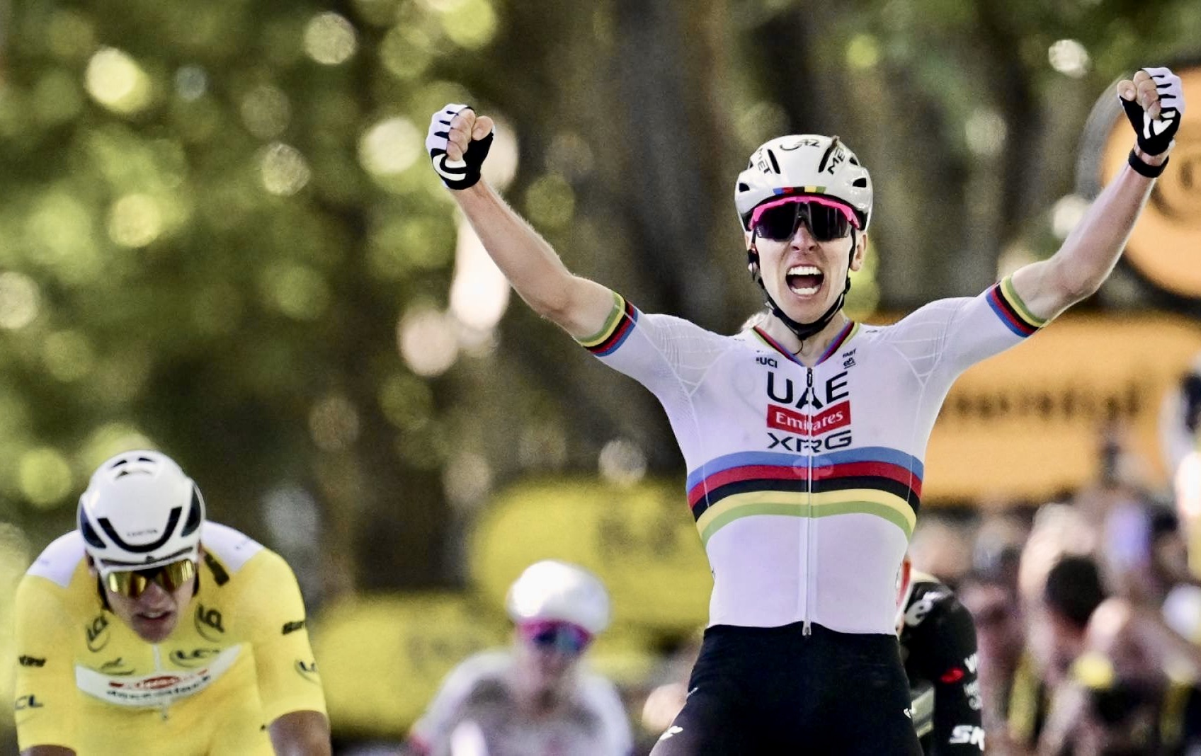 Beaten by Mathieu Van der Poel on day 2, Tadej Pogacar (UAE Team Emirates-XRG) took his revenge on the Flying Dutchman in Rouen during stage 4 of the Tour de France today.