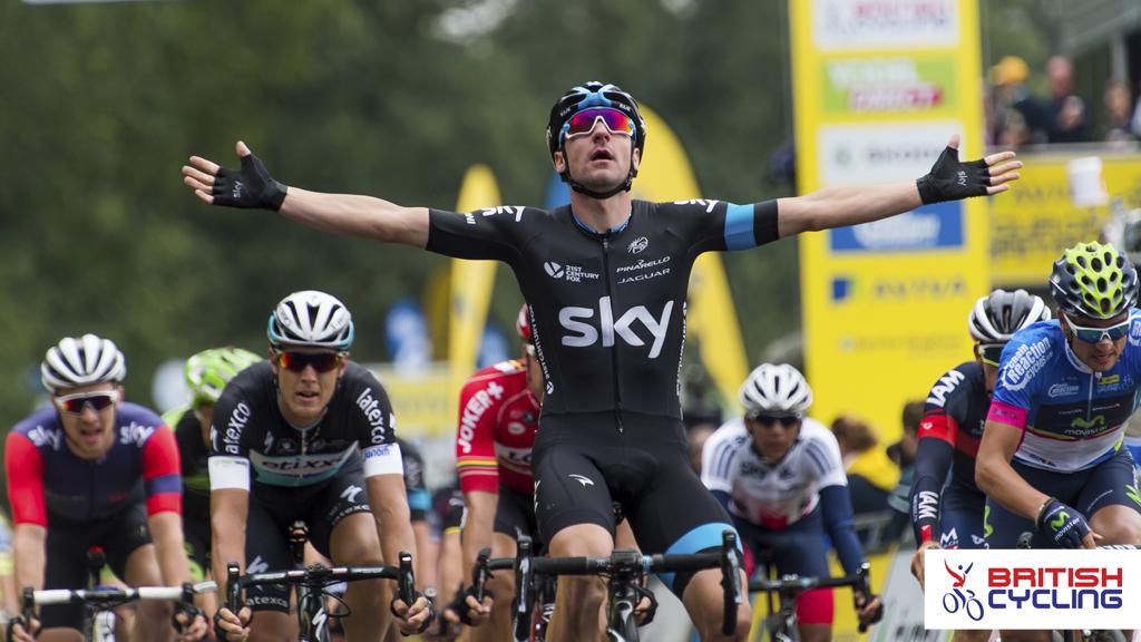 Elia Viviani (TeamSky) took his second stage win in this year’s Tour of Britain, after emerging from a hectic finale – to beat Juan José Lobato (Movistar) in a sprint finish in Kelso today.