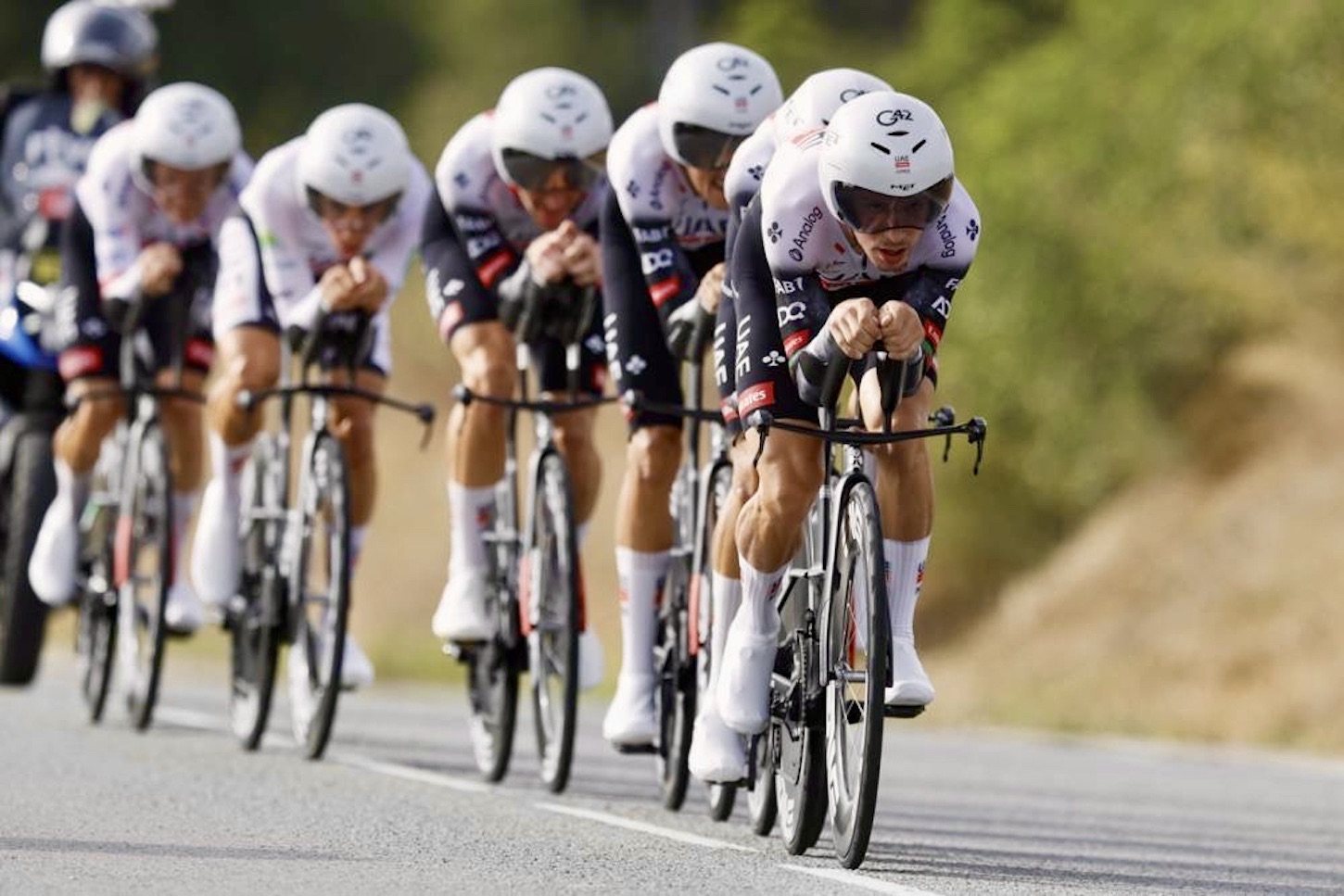 From there, Visma-Lease a Bike looked competitive through the first sector, but slipped to tenth by the mid-point, only to bring it back and finish strongly. As their four remaining riders entered the final straight, it looked as if they would run UAE close, but the clock ticked to red and they would have to settle for second and the overall lead.